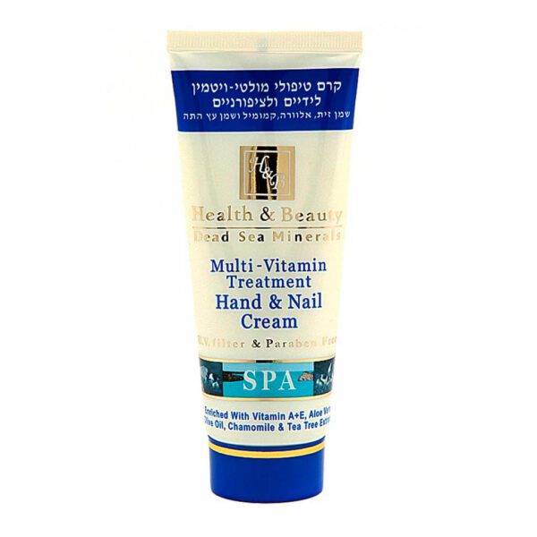 | קרם טיפולי מולטי ויטמין לידיים ולציפורניים מועשר שמן זית, אלוורה, קמומיל ושמן עץ התה 180 מ״ל |